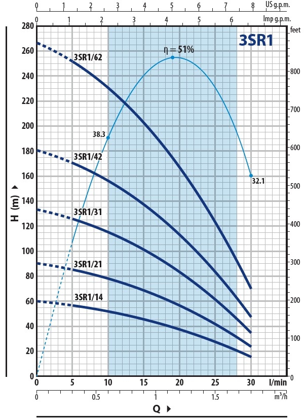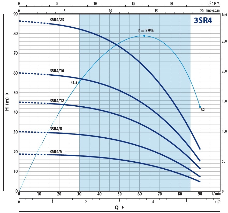 Pompa 3" Pedrollo 3SR to pompa wielostopniowa przeznaczona do tłoczenia wody czystej - przede wszystkim ze studni DN 100 - 3" , DN 110 - 3,5" oraz czasami, studni DN125 - 4"